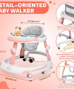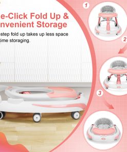 4. Andador para bebé ajustable multifuncional: El andador para bebés viene con ruedas de velocidad ajustable, permitiendo ajustar la velocidad del andador según la etapa de aprendizaje del bebé. También cuenta con un asiento ajustable en altura para prevenir al bebé de piernas en forma de O. El andador para bebés es fácil de armar, doble rápidamente el andador en solo unos pocos pasos y puede guardarse debajo de la cama o el sofá sin ocupar demasiado espacio. Puede guardar este andador para bebés en el maletero para viajes familiares o visitas a amigos.