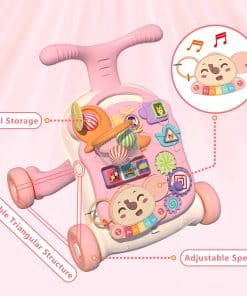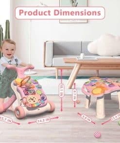 1. 3 en 1 Diseño: El andador de aprendizaje para bebé de sentarse a pararse tiene 3 modos: andador de empuje para bebés, mesa de entretenimiento para bebés y centro de actividades colgante. Los juguetes de empuje de bebé QDRAGON pueden desarrollar la coordinación y la fuerza de las piernas del bebé, al tiempo que promueven el desarrollo cerebral. 2. Mesa de Entretenimiento Desmontable: El panel de actividades desmontable viene con un cubo giratorio, bloque de reconocimiento de formas, engranaje giratorio colorido, pequeñas cuentas, marco de baloncesto y piano electrónico con forma de elefante. El divertido panel puede ejercitar la coordinación mano-ojo de los bebés, mientras cultiva su cognición. 3. Estructura de Triángulo Estable y Estructura de Tanque de Agua: La estructura de soporte de triángulo estable en el lado y la estructura rectangular de cuatro puntos en la parte inferior reduce el centro de gravedad del andador y no es fácil de volcar. El diseño del tanque de agua puede agregar agua o arena para aumentar el peso del chasis del andador del bebé, haciéndolo más estable y asegurando que el bebé se mueva hacia adelante suavemente. 4. Velocidad Ajustable y Prevenir Piernas O: Ambas ruedas tienen anillo antideslizante, que puede aumentar la fricción con el suelo, y la rueda trasera se puede ajustar a velocidad estándar y velocidad baja. No solo puede satisfacer las necesidades de caminar del bebé en diferentes etapas, sino que también previene las piernas arqueadas. 5. Material Seguro y Regalo Perfecto: El andador de empuje para niña hecho de material ABS seguro, no tóxico, bordes lisos sin rebabas. El andador de aprendizaje para bebés puede ejercitar la habilidad de equilibrio de los bebés, cultivar su imaginación, habilidad de coordinación mano y cerebro. Adecuado como regalos para bebés, niños pequeños, infantes y niñas en edad preescolar.