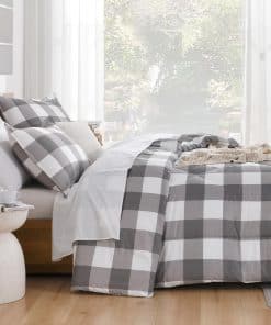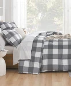 Andency Edredón a Cuadros Gris Claro King (104×90
