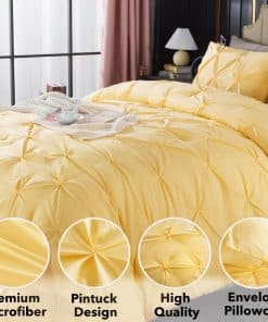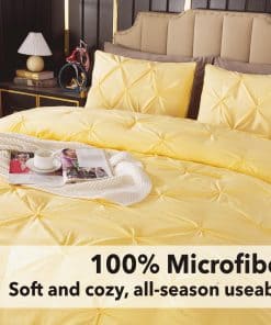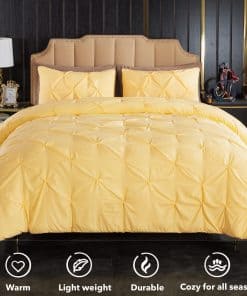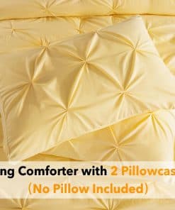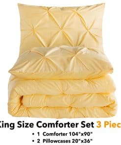 Andency Yellow Pinch Pleated Comforter King(104×90 pulgadas), 3 piezas (1 edredón con pliegues, 2 fundas de almohada) Juego de edredón con pliegues, alternativa a plumón de microfibra. Decora tu cama con este juego de edredón de microfibra con pliegues, brinda a tu habitación una atmósfera lujosa y elegante. El clásico juego de edredón amarillo se coordina fácilmente con tus decoraciones existentes de la habitación. La belleza y la función están perfectamente integradas en este juego de edredón con pliegues. Nuestro juego de edredón con pliegues está hecho de microfibra de alta calidad, que es extremadamente suave y acogedora. El edredón amarillo está lleno de microfibra alternativa al plumón, que es ligera para lograr un equilibrio perfecto entre calidez y comodidad, te brinda un buen y profundo sueño. El juego de edredón tamaño King incluye 1 edredón (104×90 pulgadas) y 2 fundas de almohada (20×36 pulgadas). Es una gran idea de regalo para tus seres queridos en ocasiones especiales: para aniversarios, el Día de Navidad, cumpleaños, u otras festividades. Cada pliegue está hecho a mano para un aspecto exquisito. La técnica madura y la artesanía experimentada mantienen el edredón siempre en perfectas condiciones, lo que garantiza la calidad de tu vida de sueño. El juego de ropa de cama de microfibra súper suave es apto para todas las estaciones, cálido y ligero. Debido al empaque al vacío, después de sacar el edredón, sostén las cuatro esquinas del edredón para estirarlo un poco y agítalo varias veces, de modo que todo el edredón pueda volver a la normalidad y el diseño con pliegues será más evidente.