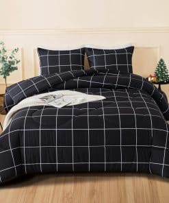 Andency Juego de Funda Nórdica a Cuadros Negro Individual