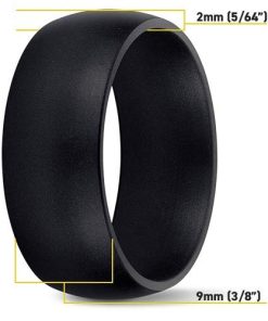 Anillo de Boda de Silicona SafeRingz TITAN en color negro de 9mm. Hecho en EE. UU. desde 2018, este anillo mantiene seguros a esposos y esposas mientras honran su compromiso. El acabado duradero y consistente garantiza una calidad que puedes confiar. Diseñado con tu seguridad en mente, este anillo está hecho para liberarse bajo una fuerza que excede 55-65 lbf/ft2, evitando la avulsión del dedo. La silicona de grado médico es resistente al calor, biocompatible, no conductora e inerte químicamente. El diseño funcional de 9mm es cómodo y transpirable para uso diario. Además, al adquirir un SafeRingz, estás apoyando a nuestras tropas, ya que una parte de cada venta se destina a enviar anillos gratuitos a los hombres y mujeres que protegen nuestro país.