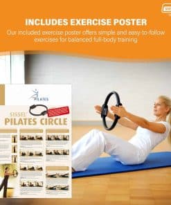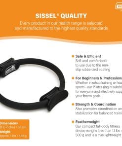 La ‘magia’ del círculo de Pilates es un anillo de metal flexible cubierto de plástico con asas acolchadas. Se utiliza para desarrollar fuerza en la parte superior e inferior del cuerpo, mejorar la estabilidad del núcleo y aumentar el control muscular. Ideal para el control al realizar ‘abdominales’. Se puede utilizar con otros equipos de Pilates y fitness. Completo con cuadro de ejercicios. Diámetro: 38 cm. Incluye: 1 x Anillo de Pilates SISSEL, Diámetro de 38 cm