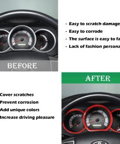 Cree un aspecto único y elegante en el interior de su Toyota Tacoma 2011-2014 con este anillo decorativo para el panel de instrumentos de acero inoxidable de alta calidad. Con un diseño exclusivo, garantiza que su automóvil se destaque y sea diferente a los demás. La instalación es fácil y sin daños gracias a las cintas adhesivas incluidas. Asegúrese de limpiar adecuadamente el panel antes de la instalación para una adhesión óptima. Además, nuestro dedicado equipo de atención al cliente está disponible para ayudarlo con cualquier pregunta que pueda surgir durante la instalación. ¡Mejore la apariencia de su automóvil hoy mismo con este anillo decorativo para el panel de instrumentos de Toyota Tacoma!