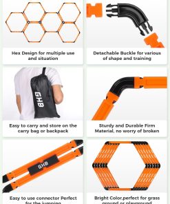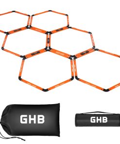 Anillos de Agilidad Hexagonal GHB con Bolsa de Transporte 6 Set Anillos Hexagonales Portátiles, Escalera de Agilidad para Entrenamiento de Agilidad. Seis Set de Anillos de Agilidad Hexagonal GHB: Este paquete incluye 6 anillos hexagonales de agilidad, cada anillo separado tiene un diámetro de 21. 5 conectores para unir los anillos. Equipo premium de entrenamiento de agilidad para el entrenamiento de baloncesto. Seis Set de Conectores de Anillos de Agilidad Hexagonal GHB: Los clips conectores incluidos le ayudan a organizar estos anillos en el orden que prefiera. Fácil de conectar, puede cambiar la forma y función del anillo de agilidad hexagonal para adaptarse a diferentes entrenamientos de agilidad y velocidad.