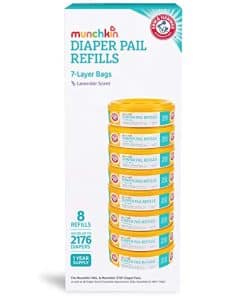 ¡Siente la diferencia! Los anillos de recambio con aroma a lavanda de Arm & Hammer hacen el trabajo sucio manteniendo los olores fuera y atrapando ese olor fresco en el interior. Cada anillo de bolsa de 7 capas tiene capacidad para 272 pañales de recién nacido, y mantiene tu guardería oliendo como – bueno – una guardería. No es compatible con la pañalera Arm & Hammer de Munchkin.