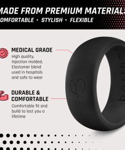 1. Anillo de bodas para un estilo de vida activo: muestra tu amor por tu pareja mientras te mantienes activo con nuestros anillos de bodas de silicona para hombres. A diferencia de los anillos de metal, nuestras bandas de silicona se mueven y giran con tus manos y dedos, lo que las hace ideales para tu entrenamiento.