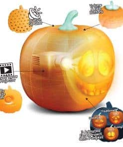 Jabberin’ Jack ofrece canto, habla y bromas! Más de 70 minutos de animaciones divertidas. Viene con altavoz incorporado y proyector, tecnología plug n’ play. Incluye 3 personajes únicos (Espeluznante, Tradicional y Divertido). Cada personaje tiene canciones originales, habla o bromas. Jack también hace caras en silencio.
