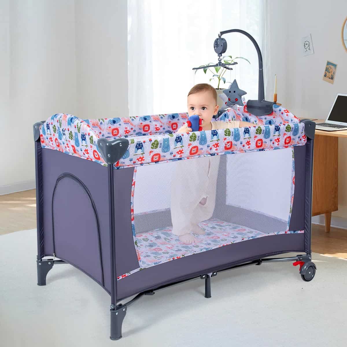 ANNA QUEEN 4-en-1 Pack and Play con Moisés, Cuna Plegable,