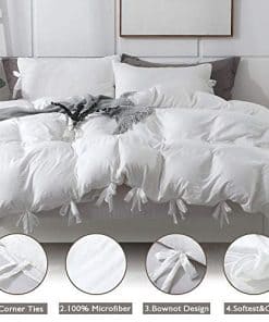 Funda de Edredón Blanco Tamaño Completo de annadaif, 3 Piezas Juego de Funda de Edredón de Microfibra Suave Lavada con Lazo de Moño (1 Funda de Edredón 79×90 Pulgadas, 2 Fundas de Almohada) Juego de Ropa de Cama de Cuidado Fácil
