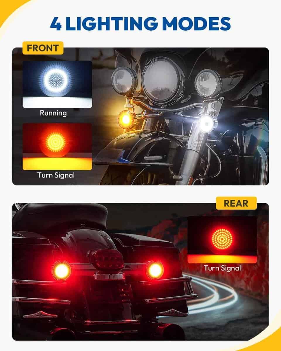 Luces de señal de giro LED brillantes de 3 1/4 pulgadas compatible con varios modelos de Harley Davidson. Cuentan con un diseño de alta intensidad con 81 chips LED SMD que garantizan una iluminación más brillante y eficiente. La conexión plug n play facilita su instalación en tu motocicleta. El modo switchback permite una mayor visibilidad en la carretera con luces de freno, señal de giro y luz de posición combinadas. Diseñadas para durar hasta 50,000 horas, son resistentes al agua y a los arañazos. Mejora la seguridad y el estilo de tu moto con estas luces LED de alta calidad.