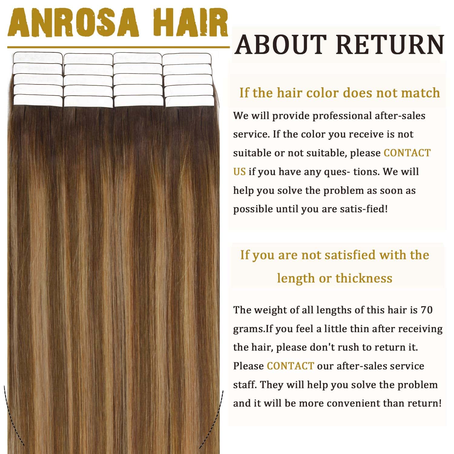 Anrosa 20pcs 50g Extensiones de Cabello en Cinta Ombre