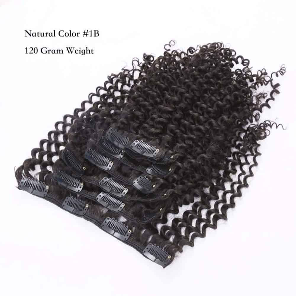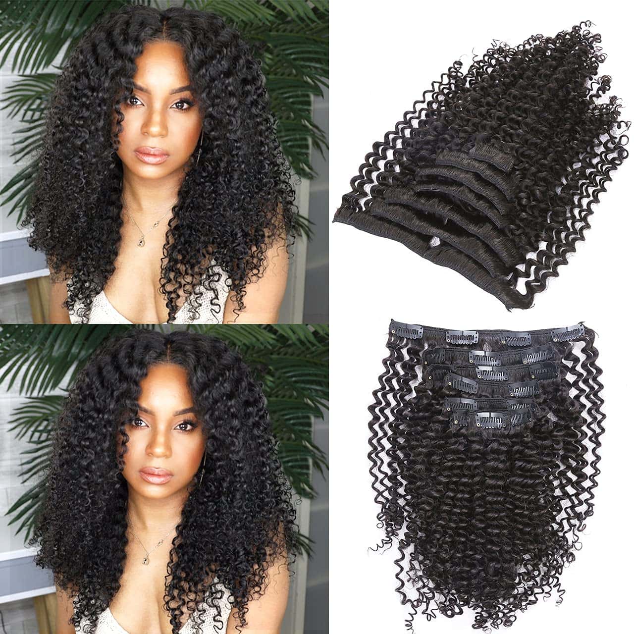 1. Afro Rizo Clip en Extensiones de Cabello Hechas con 100% Cabello Humano Remy Virgen Cortado Directamente de un Donante. El Cabello Natural con Gran Volumen y Súper Saludable, Clip Ins Suaves para Mujeres Negras.