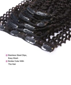 2. Productos para el Cabello Usando Afro Rizo Clip en Extensiones de Cabello Humano Natural pueden ser Lavados, Acondicionados, Teñidos, Cortados, Rizados, Atadas con Bantu, Alisados, Coloreados, Estilizados y se Puede Aplicar Calor de Forma Segura sin Dañar el Cabello.