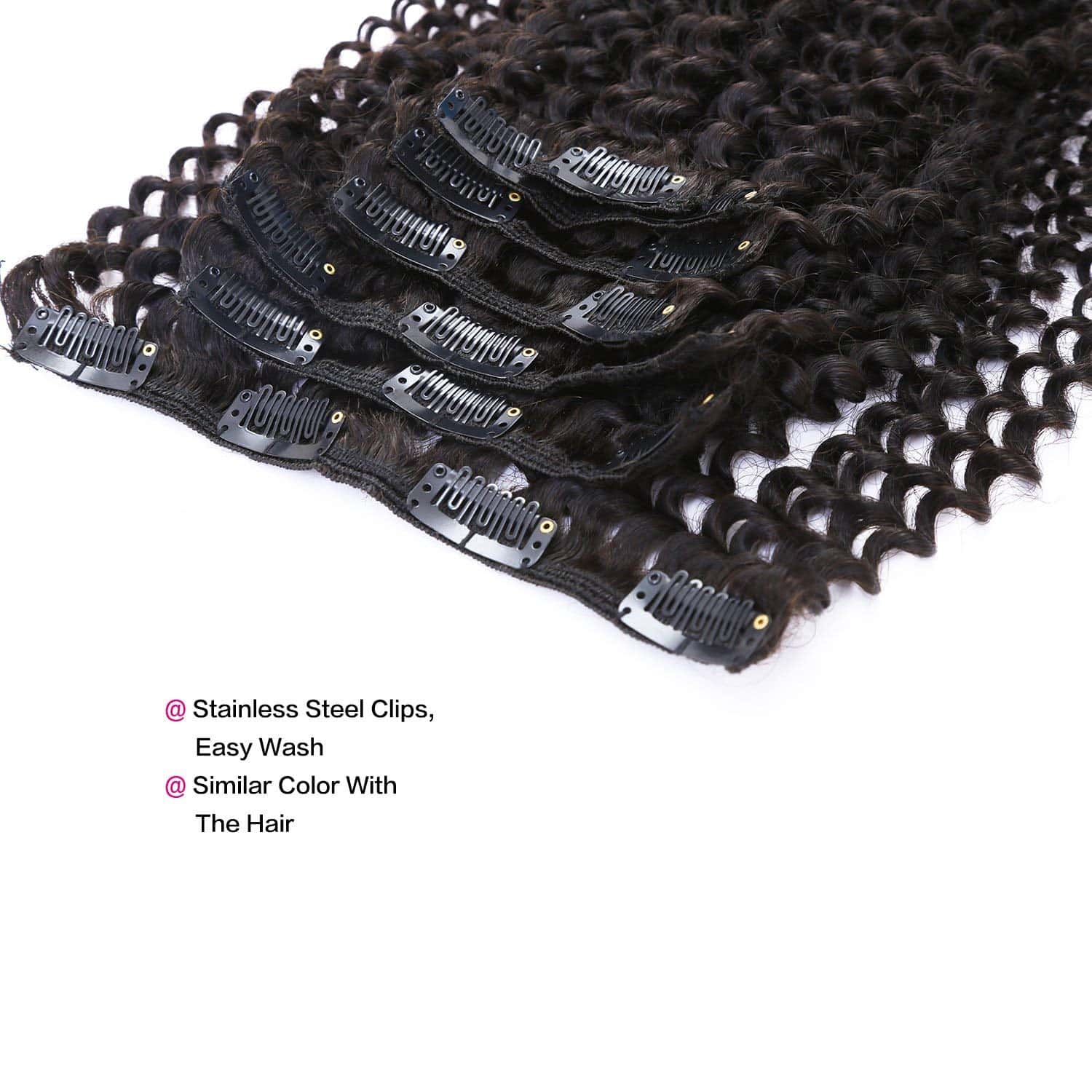 3. Método de Instalación Afro Rizado Clip Ins Extensiones de Pelo Real es fácil de Clipar y Desclipar para agregar Longitud, Volumen y Crear un Nuevo Peinado a Tu Gusto, Es Fácil de Mezclar con tu Cabello Natural Real.