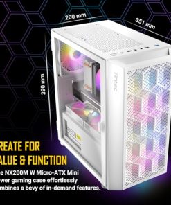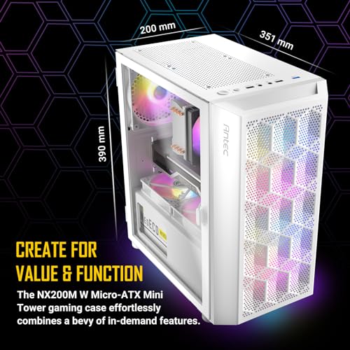 Antec NX200 M Blanco, Torre Micro-ATX, Mini-Torre Caja de Ordenador con Ventilador Trasero de 120mm Preinstalado, Diseño de Malla en Panel Frontal para Flujo de Aire Ventilado, Serie NX
