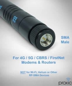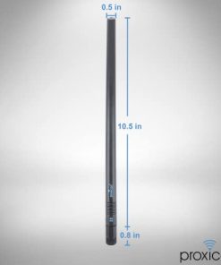 2 paquetes de antenas idénticas – para sistemas MIMO LTE La Antena Larga 3G/4G de Proxicast es una antena omnidireccional de medio/alto ganancia 3G/4G. La Antena Larga estilo «rubber-duck» es una antena dipolo omnidireccional de 11 pulg. (280 mm) que proporciona de 5 a 8 dBi de ganancia en todas las bandas de frecuencia 3G y 4G/LTE/xLTE/AWS (698 ~ 960, 1710 ~ 2170 y 2500 ~ 2700 MHz) utilizadas por los operadores celulares de EE. UU. y Canadá como Verizon Wireless, AT&T Wireless, T-Mobile, Rogers, Bell Mobility y Telus, así como la mayoría de otros operadores celulares en todo el mundo. La antena de policarbonato gira 90 grados y rota 360 grados para una posición óptima y máxima recepción de señal y cuenta con un conector macho SMA integrado y plano de tierra. Esta antena es una opción inteligente para aplicaciones móviles o estacionarias donde se requiere ganancia adicional. Compatible con todo el equipo basado en SMA incluyendo módems y routers de Cisco, Cradlepoint, Digi, Pepwave, Proxicast, Sierra Wireless y muchos otros. Propiedades Eléctricas Rango de Frecuencia: 698-960 MHz, 1710-2170 MHz, 2500-2700 MHz Impedancia: 50 ohm Ganancia: de 5 a 8 dBi dependiendo de la banda de frecuencia Radiación: Omni Polarización: Vertical VSWR: ADGP 2.0:1 Plano de Tierra: Integrado Propiedades Mecánicas Conector: SMA Macho Material Giratorio: Policarbonato / Latón Temp. de Operación: -30C a +75C Altura: 11 pulgadas / 28 cm Diámetro: 0.51 pulgadas / 13 mm NO se debe usar en conexiones Wi-Fi (RP-SMA) Hay un pequeño agujero en el plástico en la parte superior de la antena: esto está diseñado y no es un defecto. Dispositivos LTE deben usar 2 antenas idénticas para obtener los mejores resultados. NOTA: El Router de Banda Ancha 4G LTE de Verizon (Novatel T1114) requiere la opción de base magnética para instalar 2 antenas. Las antenas de alto ganancia son adecuadas cuando la fuerza de la señal está por debajo del 60% (3 barras).