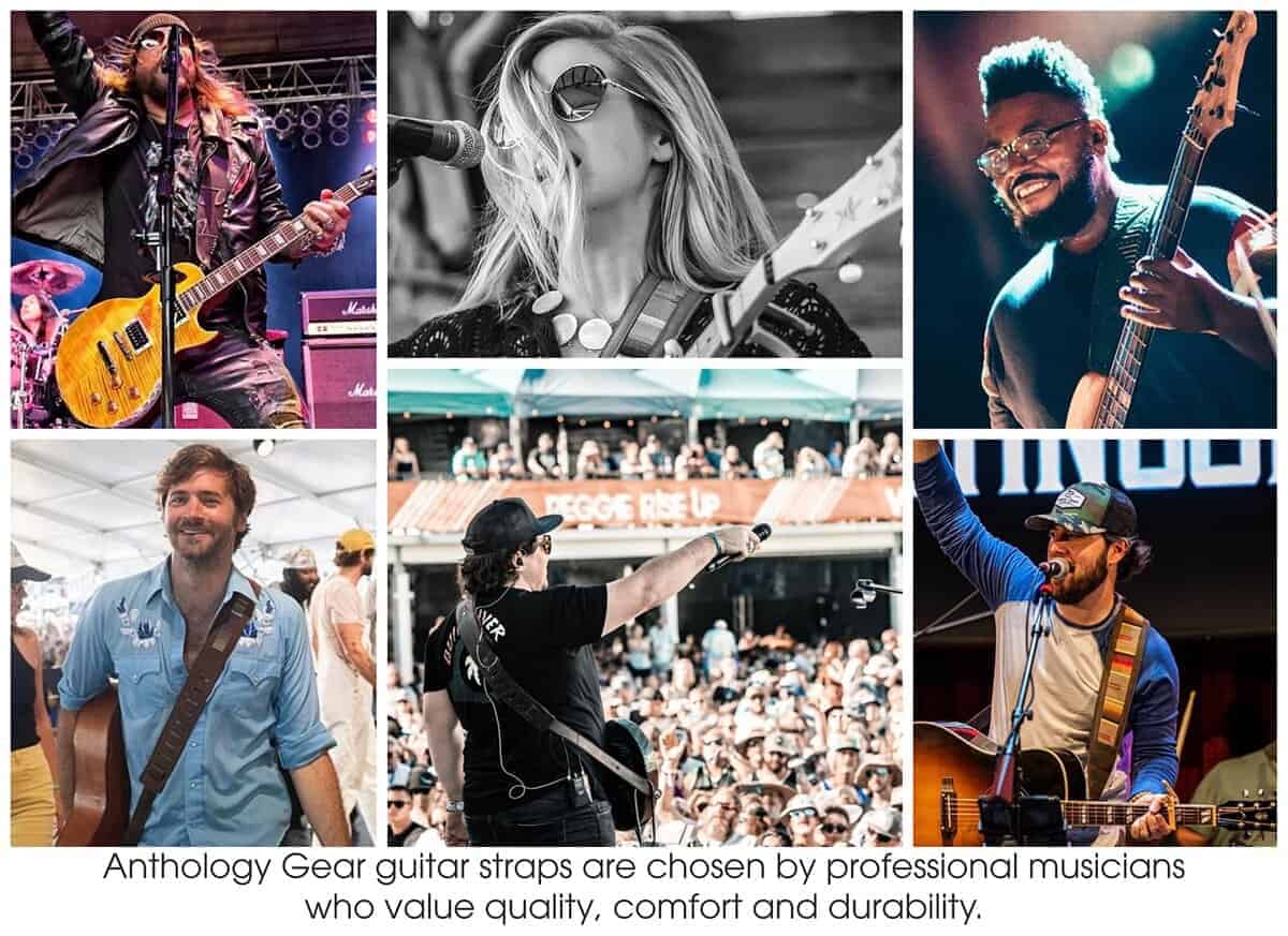 Entrega pureza analógica. Música con raíces. Arte transmitido por expertas manos trabajadoras y dedicadas. Autenticidad respaldada por el sudor de la labor manual, ya sea una melodía bien confeccionada o una guitarra hecha a medida. Piensa en Wilco. Piensa en Keith Richards con su acústica. Piensa en Sinatra en una pequeña habitación con un micrófono, acústica cálida y un poco de humo de cigarro. El estilo reside en lo que puedes lograr con menos. Cualquiera puede ponerse un traje de $5000. Pero mira a James Dean con sus jeans y una simple camiseta blanca. Si buscas estilo auténtico, entonces nadie con una guitarra Strat de alta gama y todos los pedales de efectos del mundo ha logrado superar lo que algunos de los originales músicos de blues transmitían a través de una guitarra casera, desafinada y desgastada. Es por eso que cierro mis ojos ante el empaque, los trucos y las obsesiones vacías con las apariencias, y simplemente me sintonizo con los sonidos sublimes, sin procesar, que resuenan verdaderos. Directo y sin diluir. Todas las correas de guitarra y bajo de Anthology están hechas a mano con los cueros de mayor calidad del mundo. Elegimos cueros que distribuyen completamente el peso de la guitarra a lo largo de la correa, para una experiencia de juego más cómoda en esos largos conciertos. Nuestras correas no solo son hermosas, también son súper cómodas. Entre una capa superior de resistente cuero de grano completo y una capa inferior de cuero de grano completo ultra suave, utilizamos un acolchado premium de alta densidad para maximizar la comodidad sin sacrificar la resistencia. Brindamos al guitarrista lo mejor de ambos mundos, una correa de guitarra o bajo acolchada y elegante. ¡Cómoda y duradera con estilo! Para rematar, nuestro cuero de grano completo se arquea y embellece con el uso. Todas nuestras correas de guitarra conservan sus marcas, raspaduras y cicatrices naturales, lo que significa que tienen mucha personalidad cruda y resistente. Envejecen increíblemente, obteniendo una hermosa pátina vintage, rica en carácter. ¡Amarás esta correa aún MÁS con el tiempo!