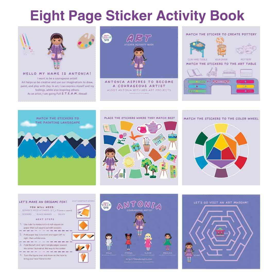 ¡Antonia The Artist! 1. Muñeca de peluche de alta calidad educativa y potenciadora. 2. Incluye un libro de Actividades de Pegatinas de 8 páginas que ayuda a los niños a emocionarse por aprender sobre el Arte!. 3. Las Theodora S.T.E.A.M. Girls son un conjunto de cinco muñecas cada una con un origen diverso. Silla, la científica americana asiática, Tyriqa, la tecnóloga americana negra, Elaine, la ingeniera americana caucásica, Antonia, la artista americana latina, y Maalika, la matemática americana india. Juguetes perfectos para niñas de 3+ años. ¡COLÉCTALOS TODOS!