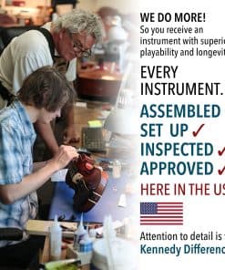 p b LA DIFERENCIA DE KENNEDY VIOLINS /p p ¿Qué hace que los instrumentos de cuerda de Kennedy Violins sean los mejores del mercado? Compramos cada violín directamente del fabricante, una práctica comercial rara que reduce nuestros costos para poder pasarle los ahorros a usted. Cada violín se ensambla completamente y se ajusta en nuestra tienda de Vancouver, Washington. Garantizamos que la calidad y el sonido de su violín serán muy superiores a cualquier otro instrumento en este rango de precios. /p p ¡La Diferencia de Kennedy Violins ha obtenido las calificaciones más altas en nuestra tienda para cualquier minorista de instrumentos de cuerda! /p p b CARACTERISTICAS DEL VIOLIN /p p /p p Maderas macizas talladas, hermosas de abeto y arce flameado /p p Diapasón, clavijas y piezas 100% de ébano /p p Puente de arce tallado a mano /p p Acabado a base de aceite frotado a mano (sin laca espesa) /p p Cuerdas instaladas D’Addario Prelude /p p Supera todos los estándares Suzuki y MENC /p p Altura de cuerda precisamente medida para una tocabilidad cómoda /p p b CARACTERISTICAS DEL ARCO /p p Madera de Brazilwood fuerte, receptiva y de alta calidad /p p Crin de caballo mongol duradero para un tono suave y completo /p p Anzuelo de ébano metalizado, equilibrado /p p Acentos genuinos de madreperla /p p b ACCESORIOS INCLUIDOS /p p Un año de garantía en todos los accesorios /p p Estuche Portland Oblong con garantía de un año /p p El estuche incluye correas, higrómetro, bolsillo para música, amplio almacenamiento y cremalleras genuinas de YKK /p p Resina /p p 4 afinadores finos /p p Juego extra de cuerdas de repuesto, afinador digital, paño de limpieza, Reposacabezas de Hombro Portland Classic. /p p ¡Pero espera, hay más! ¿Quiere personalizar su conjunto de violín de forma gratuita? ¡Llámenos a nuestra tienda de Vancouver, Washington o visite nuestro sitio web para personalizar completamente su pedido exactamente como lo desee!