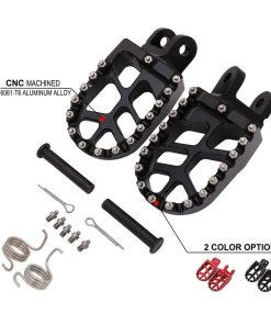 Superficie ANODIZADA – Después del tratamiento de anodizado, se adhiere una hermosa película de óxido a la superficie, lo que mejora la resistencia al desgaste y la resistencia a la corrosión de estos reposapiés para motocicletas de cross. Los dos tonos de negro y verde son muy adecuados para los colores temáticos de las motocicletas. ALEACIÓN DE ALUMINIO – Está hecho de aleación de aluminio 6061-T6 mediante CNC. Es una de las aleaciones de mayor resistencia, no se oxida ni se corroe, no se rompe ni se desgasta fácilmente. La estructura única de puente «Y» mejora la resistencia y estabilidad del pedal, convirtiéndolo en los reposapiés para motocicletas más fuertes del mercado.