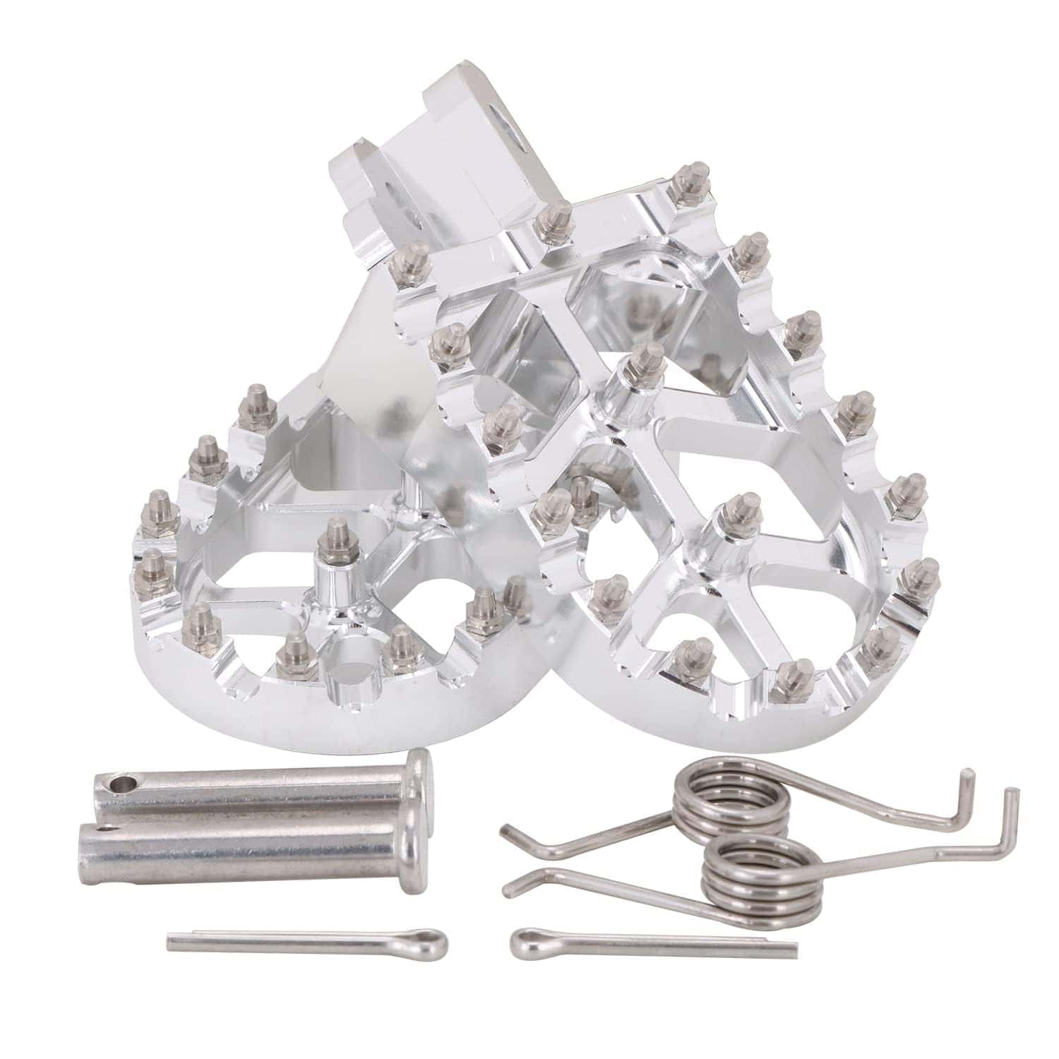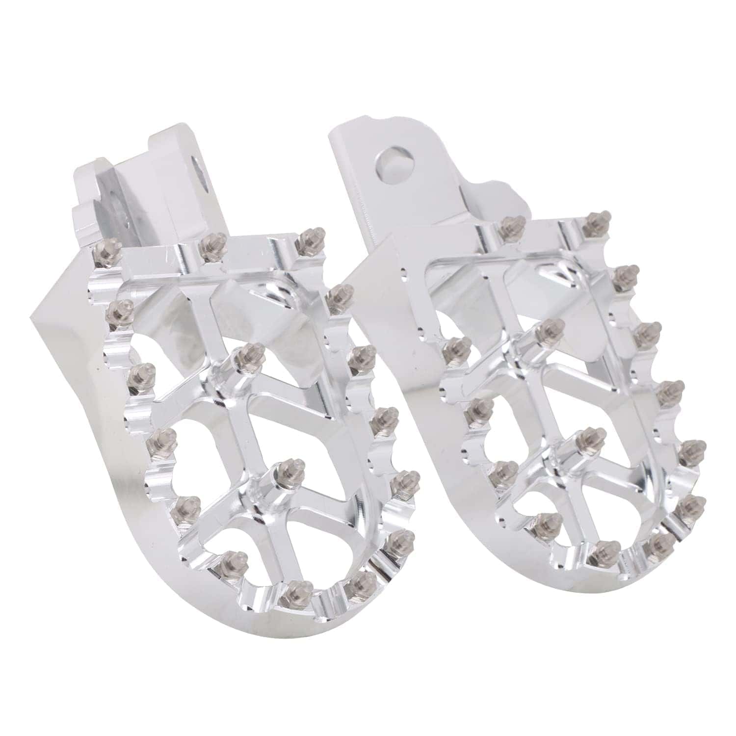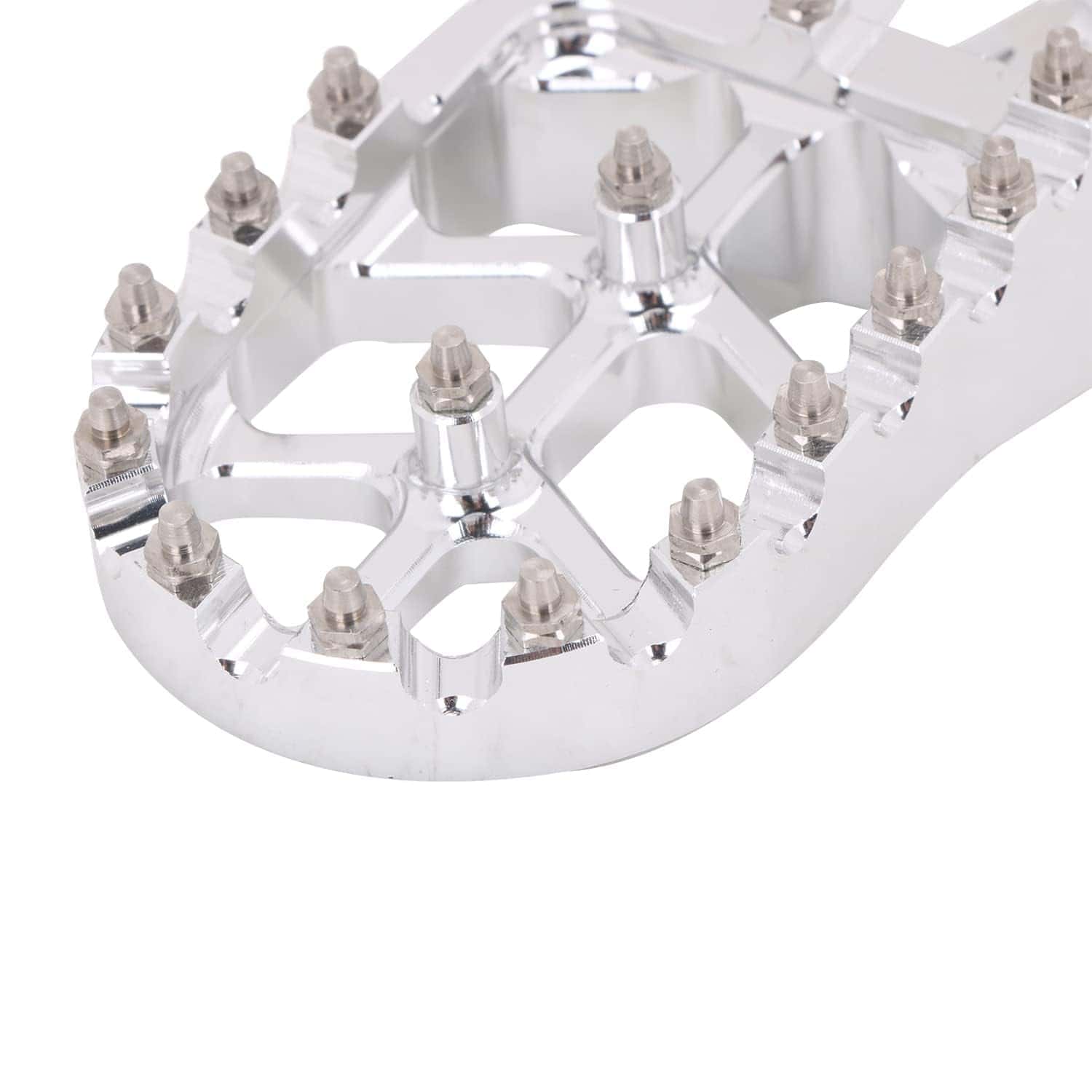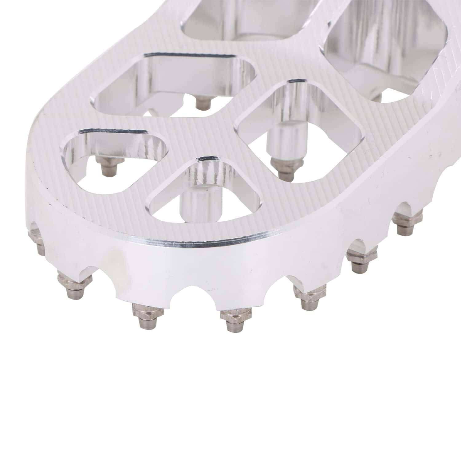 Este par de pedales de pie para motocicleta AnXin es perfecto para CRF110F 2013-2022 CRF125F 2014-2023. Hechos de aleación de aluminio T7 7075 a través de CNC, estos pedales son extremadamente resistentes a la corrosión y rotura. Su estructura en forma de puente «Y» brinda una gran estabilidad y resistencia. Además, son más anchos y grandes que los originales para brindar una mejor fricción y control, evitando deslizamientos. Equipados con 17 dientes para mayor agarre en condiciones húmedas y fangosas, estos pedales son la mejor opción para tu motocicleta. Además, su superficie anodizada luce brillante y decorativa en tu vehículo.