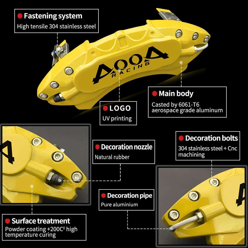AOOA Caliper Covers Amarillos con Letras Negras para