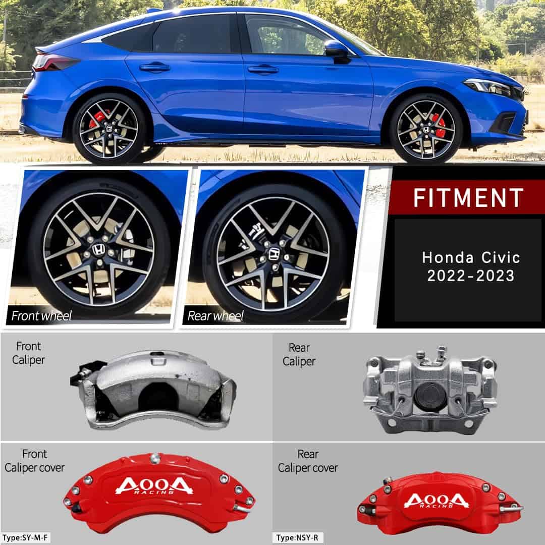 Cubiertas de pinza de freno de aluminio rojo con caracteres blancos específicamente diseñadas para adaptarse a los Honda Civic de la generación 11. Estas cubiertas están fabricadas con aluminio de alta calidad y cuentan con clips de acero inoxidable para una instalación segura y duradera. Su recubrimiento de polvo asegura la resistencia a la corrosión y mejora la apariencia de las ruedas de su vehículo. El proceso de instalación es sencillo y se incluyen instrucciones detalladas para guiarle en cada paso. Las cubiertas de pinza de freno AooA han sido sometidas a rigurosas pruebas de seguridad y calidad y se han demostrado que promueven la disipación del calor, garantizando la seguridad mientras conduce. Disponibles en una variedad de colores y modelos para adaptarse a sus preferencias y hacer que su automóvil luzca aún más atractivo. Asegúrese de verificar la compatibilidad con su Honda Civic de la generación 11 antes de la compra.