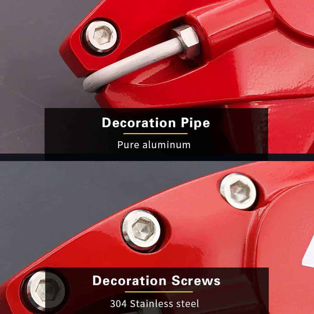 1. MATERIAL: Cubiertas de pinza de freno de aluminio de alta calidad emparejadas con clips de acero inoxidable específicos para el vehículo y recubiertas de polvo para mayor durabilidad para mejorar la apariencia de tus ruedas.
