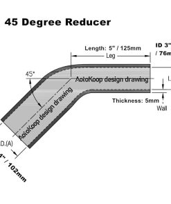 Manguera de silicona AotoKoop de alto rendimiento con refuerzo de 3 capas de nylon y grosor de 0.18 pulgadas (4 mm); presión de trabajo de 85 PSI / presión de explosión de 245 PSI. Resistente al agua, ozono, oxígeno y alta temperatura, con estabilidad de material excepcional. Resistencia a la temperatura de -60 a 220 C (-76 a 428 F). La serie de productos de silicona de AotoKoop incluye mangueras de automóviles en general, diferentes tipos de tubos de radiador, acopladores y tuberías intercooler turbo, tubos de admisión, etc.