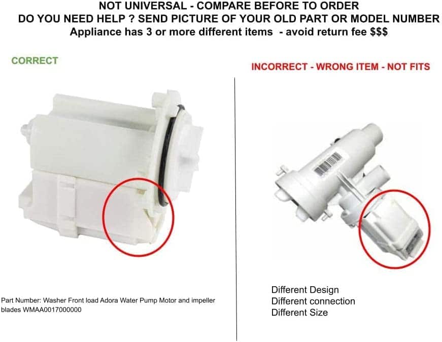 Motor de bomba de drenaje Global Solutions USA Wl SOLO Parte Número AP4324598 reemplaza 1394137, AH1766031, EA1766031, PS1766031, WH23X10026, WH23X10037. Se ajusta a la lavadora Whirlpool. Compatible con Whirlpool Maytag KitchenAid Jenn-Air Amana Magic Chef Admiral Norge Roper y otros. Este no es un producto OEM de Whirlpool. El uso de los nombres comerciales y logotipos de los fabricantes son marcas registradas de sus respectivos propietarios. Cualquier uso de la marca, números de parte o designación de modelos de los fabricantes para este producto es únicamente con fines de demostración y para identificación de compatibilidad y se muestran únicamente con fines descriptivos. Su uso no está asociado con, no implica ninguna afiliación o respaldo por parte de ningún fabricante. Compatible con modelos GFAN1000L2WW, GFAN1000L4WW, GFAN1100L2WW, GFAN1100L4WW, GFWH1200D0WW, GFWN1000L0WW, GFWN1000L1WW, GFWN1000L2WW, GFWN1100D0WW, GFWN1100L0WW, GFWN1100L1WW, GFWN1100L2WW, GFWN1100L4WW, GFWN1200D0WW, GMAN1200D0WW, GMAN1200L2WW, GMAN1200L4WW, WBVH5100H1WW, WBVH5200J0WW, WBVH5200J1WW, WBVH5200J2WW, WBVH5200J3WW, WBVH5200K0WW, WBVH5300K0WW, WBVH5300K1WW, WBVH5300K3WW, WBVH6240H1WW, WCVH6260H1WW, WCVH6400J0WW, WCVH6400J1WW, WCVH6400J2WW, WCVH6600H0MB, WCVH6600H0MS, WCVH6600H1BB, WCVH6600H1GG, WCVH6600H1MB, WCVH6600H1MS, WCVH6600H1WW, WCVH6800J0BB, WCVH6800J0GG, WCVH6800J0MB, WCVH6800J0MR, WCVH6800J0MS, WCVH6800J0WW, WCVH6800J1BB, WCVH6800J1MB, WCVH6800J1MR, WCVH6800J1MS, WCVH6800J1MV, WCVH6800J1WW