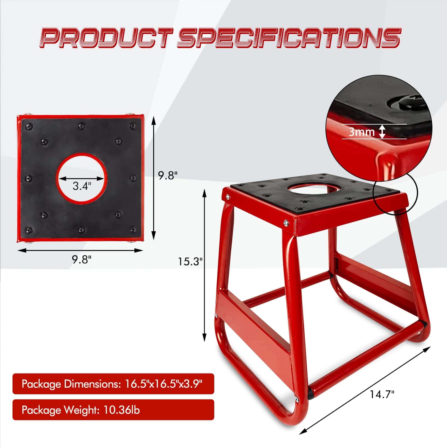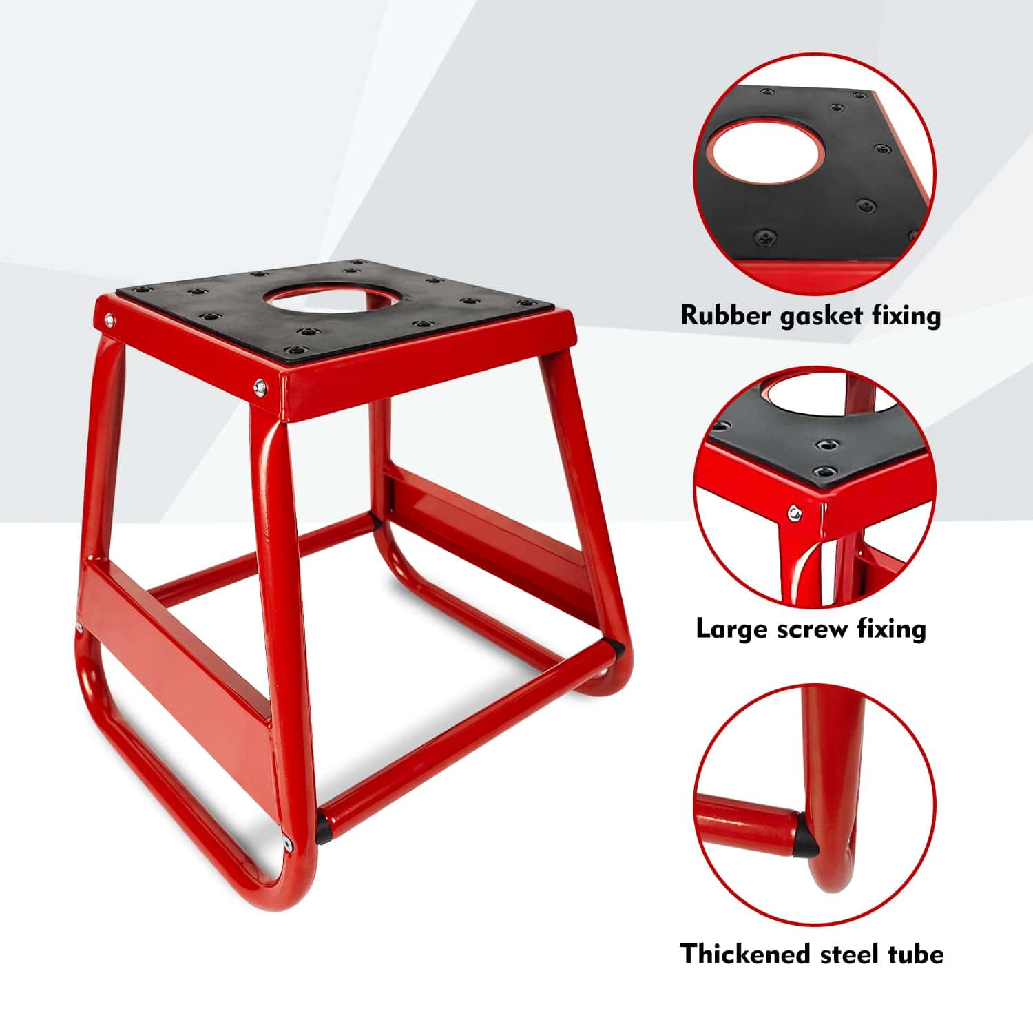 El soporte de motocicletas Apextreme está fabricado con acero de alta calidad, diseñado para ser fácil de usar, portátil y lo suficientemente resistente como para manejar pequeños vehículos personales como motocicletas, motos de tierra, motos acuáticas, motos de nieve y vehículos todo terreno. Para su uso en el garaje, tienda o en la pista.