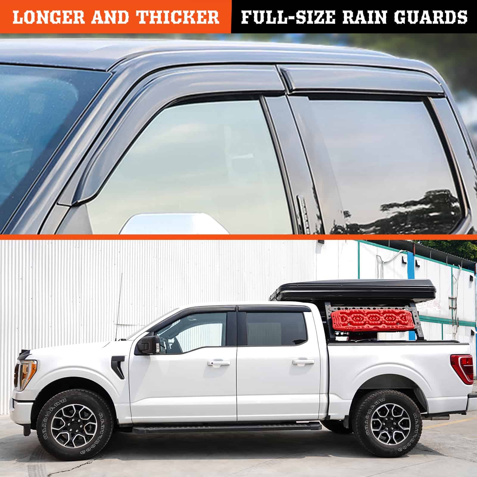 2. DISEÑO PRÁCTICO: Las viseras de ventanas más gruesas de APILT te permiten bajar fácilmente las ventanillas en días soleados, lluviosos, nevados y ventosos, disfrutando de aire fresco mientras mantienes el interior del auto protegido de todas las condiciones climáticas. En la vida diaria, este accesorio para auto mejorará la usabilidad y comodidad de tu camioneta pickup.