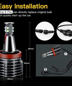 Con cables impermeables, con cuerpo de aluminio de aviación para liberación rápida de calor / prevención de sobrecalentamiento, mantenga la temperatura de los ojos de ángel dentro del rango de trabajo normal, extienda la vida útil hasta 50000 horas. Diseño plug and play, sin modificación, terminando la instalación en 10 minutos. Especialmente diseñado para BMW sin códigos de errores de advertencia, mensaje de advertencia de bombilla fundida. Iluminación de 360 grados, salida de luz blanca xenón de 6000k, patrón de luz perfecto, lo hace más brillante que los ojos de ángel normales. Nota: 2008-2012 BMW debido a algunos modelos de problemas de estructura de lámparas, el automóvil antiguo es una sola fuente de guía de luz, ¡así que el diámetro exterior se atenúa o incluso no hay fenómeno de luz! Este es un problema de estructura del modelo, no se puede evitar, ¡los que se preocupan por comprar con precaución!