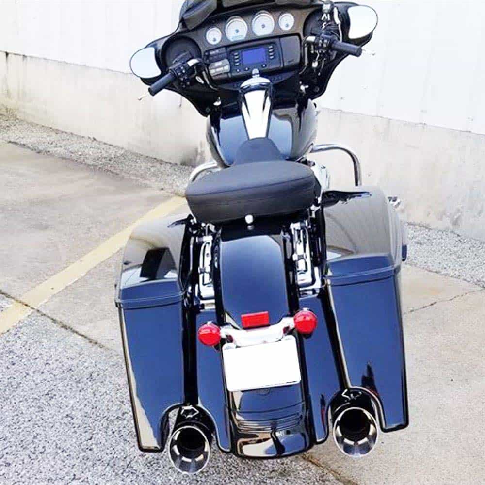 Adecuado para modelos Harley Touring Street Glide Road Glide 2014 en adelante con guardabarros trasero equipados con luces tri-bar. (Los propietarios de modelos sin luz trasera tri-bar de fábrica, deben adquirir una para un ajuste adecuado)