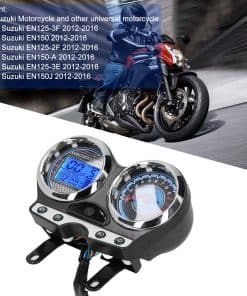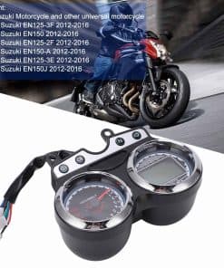 Especificación: Tipo de artículo: Medidor de Motocicleta Material: ABS Color: Negro Tamaño: Aprox. 21,4 x 18,1 x 9,2 cm/8,4 x 7,1 x 3,6 pulgadas Voltaje: 12V Compatibilidad: Compatible con Motocicletas Suzuki y otras motocicletas universales Compatible con Suzuki EN125-3F 2012-2016 Compatible con Suzuki EN150 2012-2016 Compatible con Suzuki EN125-2F 2012-2016 Compatible con Suzuki EN150-A 2012-2016 Compatible con Suzuki EN125-3E 2012-2016 Compatible con Suzuki EN150J 2012-2016 Lista de paquetes: 1 x Medidor de Motocicleta Nota: Por favor permita un error de 0-2 cm debido a la medición manual. Gracias por su comprensión. Tenga en cuenta que el nuevo tipo y el tipo antiguo de este producto se enviarán al azar, y asegúrese de que no le importe antes de ordenar.