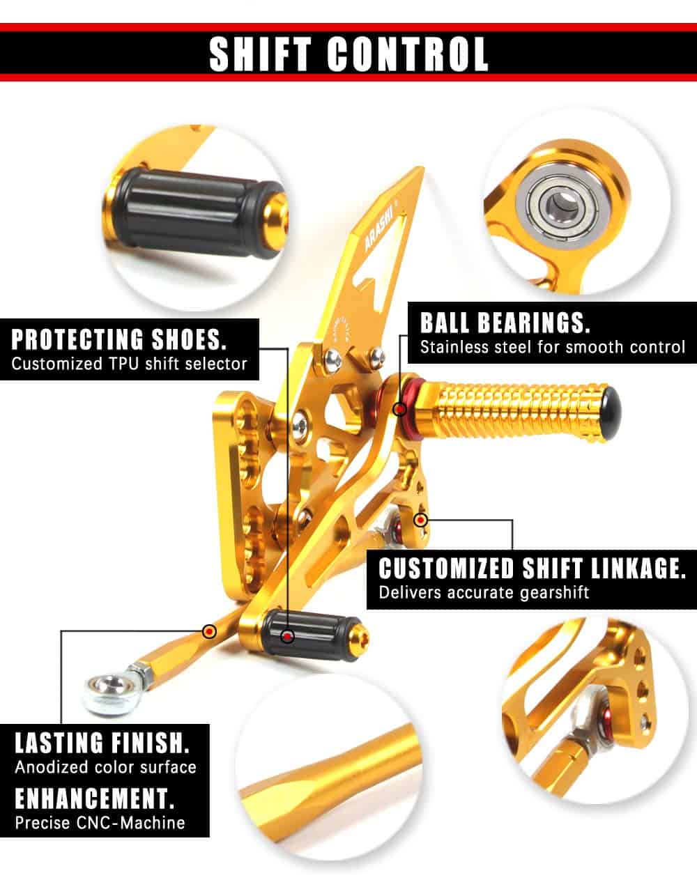 Los reposapiés mejorados están fabricados en aluminio de peso ligero.