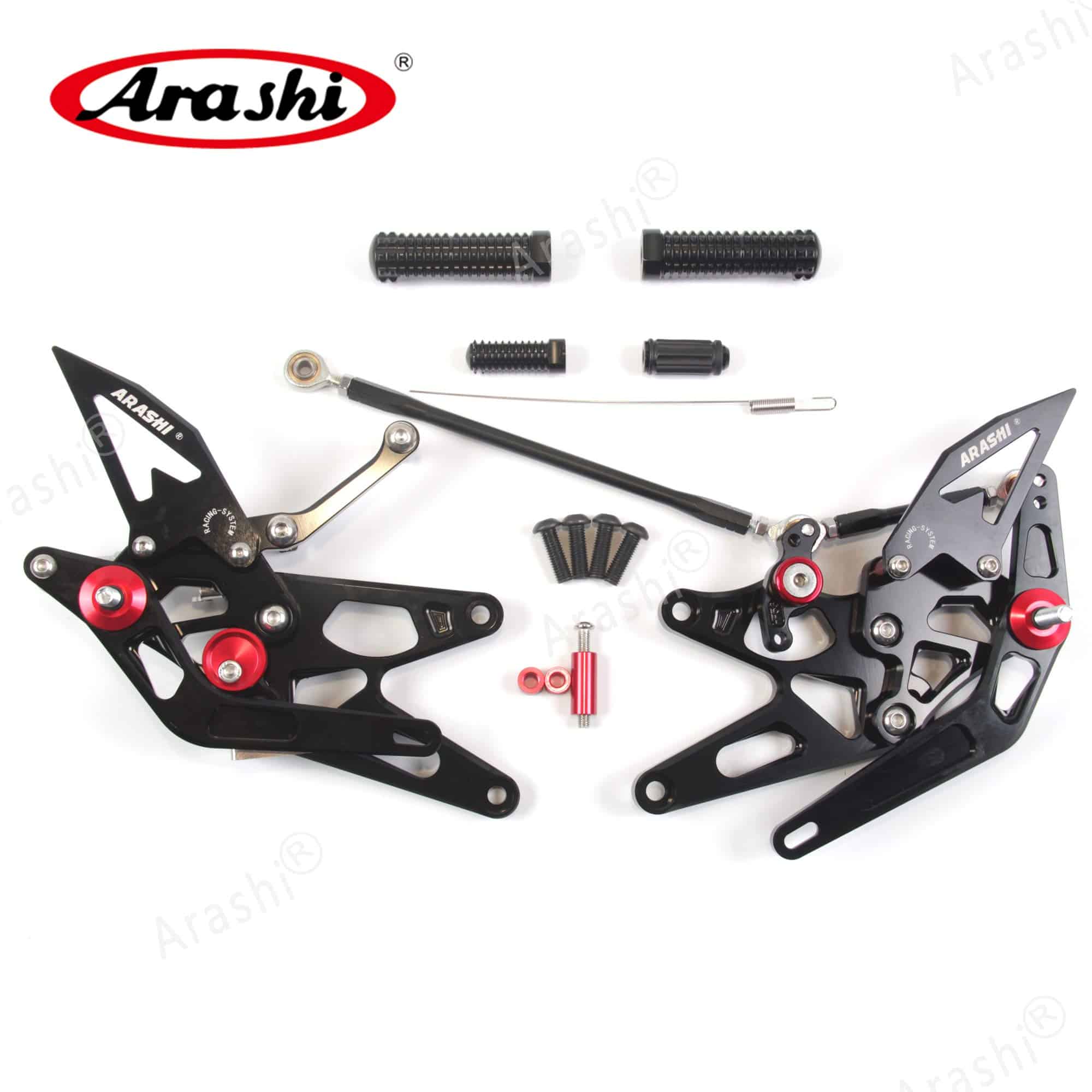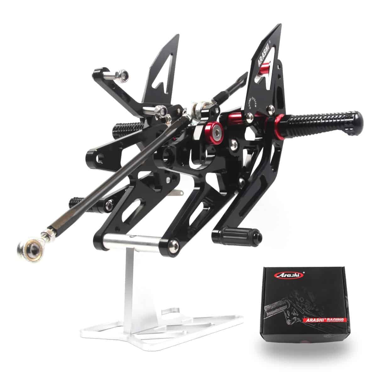 ¡MEJORADO! Arashi Reposapiés Ajustables Versión 2.0. Feature 100% nuevo. Los reposapiés actualizados están fabricados con peso ligero. El protector de talón actualizado tiene un espesor adicional. El borde estriado mejorado crea resistencia al deslizamiento. Diseñado específicamente para tu moto con Arashi grabado. El enlace de cambio personalizado brinda cambios de marcha precisos. Diseñado para un ajuste preciso y una fácil ajuste para adaptarse a tu posición de conducción. Controla la luz de freno. Resorte de retorno externo para el pedal de freno. Color: Acabado duradero. Superficie de color anodizado. Opciones de color: Negro. Material: Resistencia superior. Aluminio de grado aeronáutico billet 6061-T6. Compatibilidad: Para Yamaha YZF R1 2005 2006. Aviso: No dudes en contactar con nosotros si tienes alguna pregunta. Podríamos proporcionar fotos de instalación si no sabes cómo instalarlo.