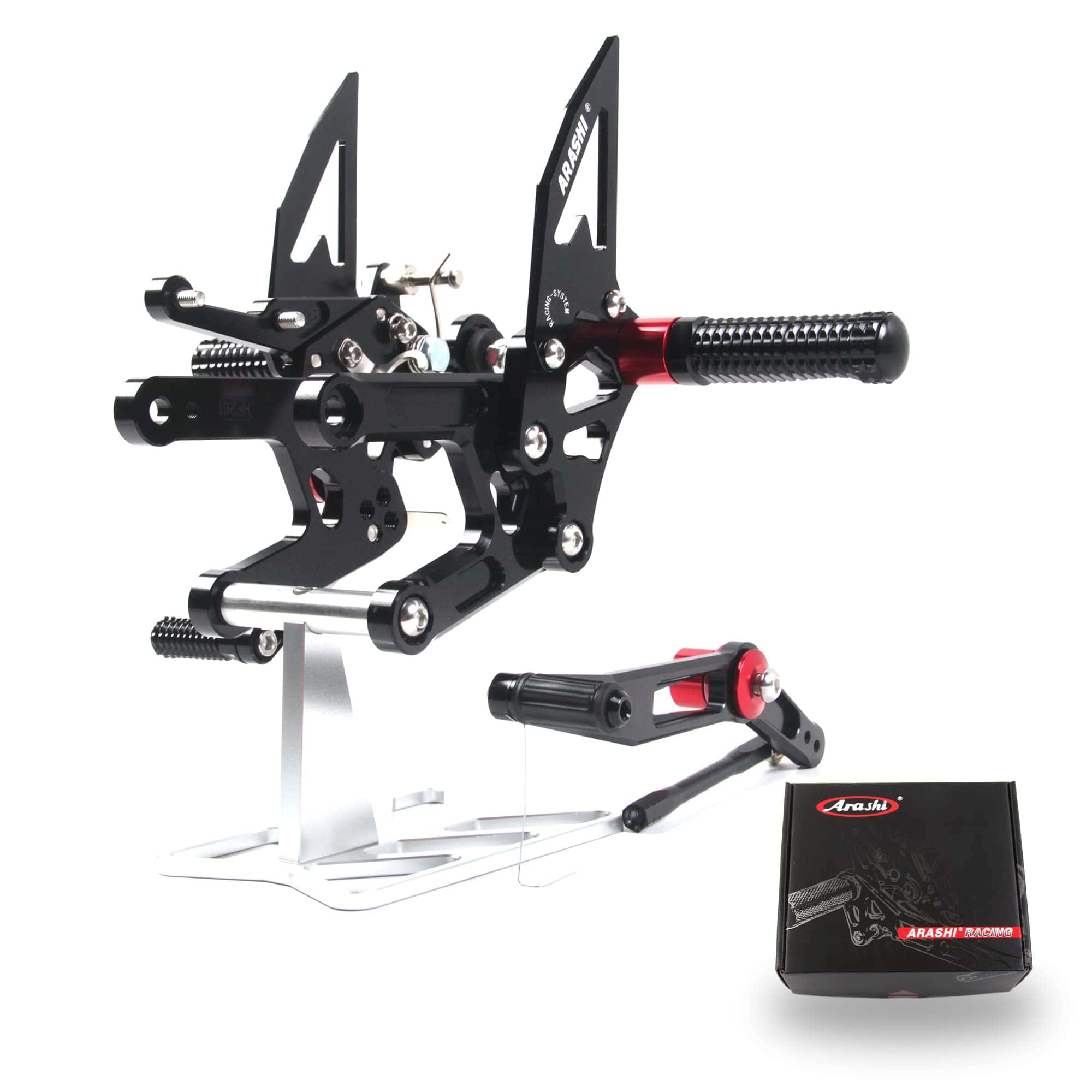 Condiciones: 100% Nuevo. Los reposapiés mejorados están hechos de aluminio liviano. El protector de talón mejorado tiene un grosor adicional. El borde estriado mejorado crea resistencia al deslizamiento. Diseñado específicamente para tu motocicleta con Arashi grabado. La conexión de cambio personalizada proporciona un cambio de engranaje preciso. Diseñado para un ajuste preciso y fácil ajuste para adaptarse a tu posición de conducción. Controla la luz de freno. Resorte de retorno externo para el pedal de freno. Color: Acabado duradero. Superficie anodizada en color.
