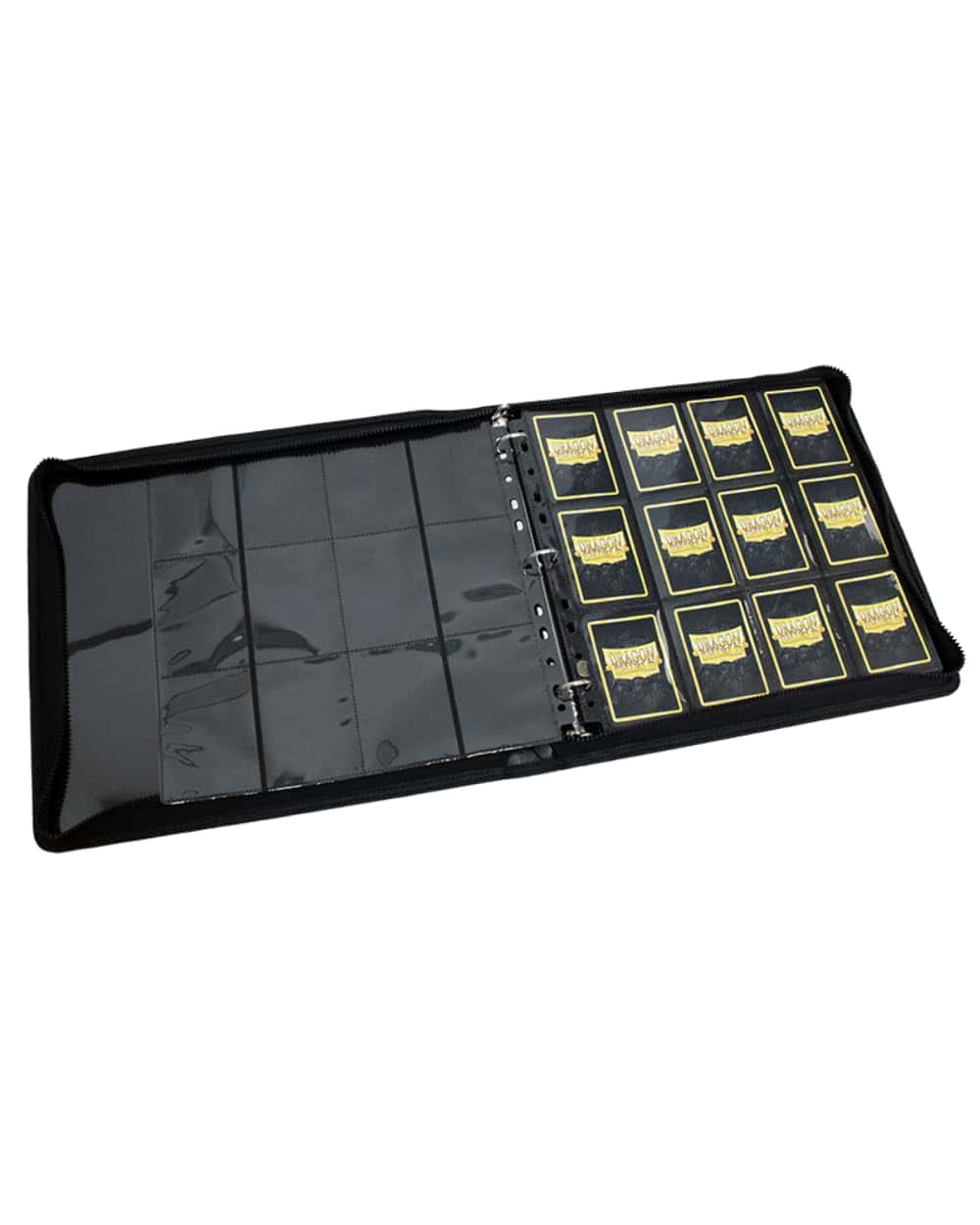 Almacena y muestra de forma segura tus cartas preciosas con el magnífico binder Zipster XL, el álbum de elección para coleccionistas e intercambiadores. Guarda tus cartas debajo de la cubierta especialmente reforzada Dragon Skin que protege tus cartas preciosas de abolladuras y pliegues. El Zipster XL viene con 24 páginas de carga lateral de 24 bolsillos y muestras de otras páginas de bolsillos Dragon Shield. Las páginas de bolsillos Dragon Shield tienen esquinas redondeadas, un respaldo negro y bolsillos para cartas en cada lado de la página. Los anillos D-lock robustos mantendrán de manera confiable tus páginas de bolsillos Dragon Shield. El Zipster hace que hojear tu colección sea una experiencia alegre. Asegura tus cartas dentro del Zipster con una cremallera confiable que evita que las cartas se deslicen accidentalmente.