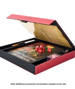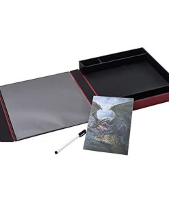 La Dragon Shield Player Companion es una caja de almacenamiento y área de juego dos en uno para jugadores de juegos de rol de mesa. Utiliza el Player Companion para empacar dados, miniaturas, bolígrafos/lápices, hojas de personaje y un libro de RPG o dos. Lleva todo lo que necesitas para sumergirte en mazmorras en un compañero práctico. El Player Companion se convierte en tu área de juego, despliega y tira los dados en la bandeja de dados para un sonido satisfactorio. Coloca tu hoja de personaje debajo de la capa y usa el marcador de borrado en seco incluido para hacer un seguimiento de los HP, inspiración o salvaciones de muerte sin marcar directamente tu hoja de personaje. Puedes limpiar fácilmente y volver a escribir en la capa. ¿Utilizas hojas de personaje digitales en un teléfono móvil o tableta? Usa los bloques de espuma incluidos y colócalo en el compartimento de miniaturas para colocarlo en el ángulo de visión perfecto mientras juegas. El Companion se puede plegar si el espacio en la mesa es limitado. El Player Companion cuenta con un exterior resistente de piel de dragón, lo que hace que el compañero sea una pieza duradera de equipo de aventuras. Los accesorios de juego de rol de Dragon Shield están diseñados para mejorar la jugabilidad y la inmersión para los maestros de juego y jugadores de juegos de rol de mesa. Incluido en la caja: – Marcador de borrado en seco – Aventura mini de Dragon Shield Características: – Espacio para miniaturas, bolígrafos y dados – Doble como bandeja de dados – Exterior resistente de piel de dragón – La capa transparente y el marcador de borrado en seco incluido facilitan el seguimiento de los puntos de impacto – Un fuerte cierre magnético garantiza el transporte seguro y el almacenamiento de contenidos – Elegante forro de raso duquesa – Encaja un teléfono inteligente o iPad – Espacio para libros de RPG – El compartimento de libros del Player Companions mide 28.5 x 22.2 x 3.8cm
