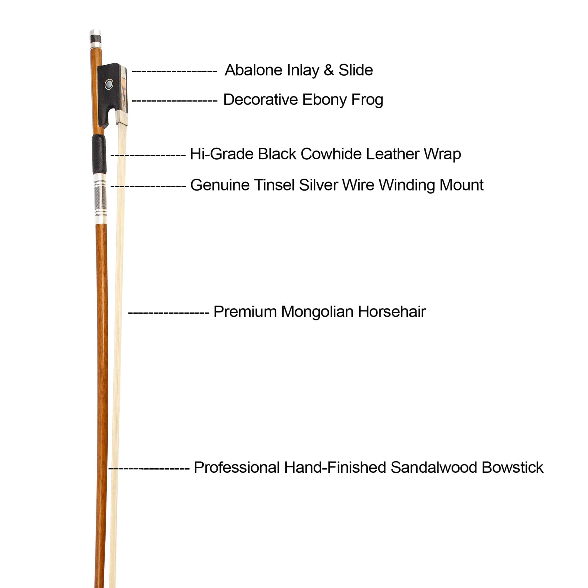 En MIVI Music, creemos en hacer arcos a la antigua usanza. MIVI Music selecciona solo los materiales de mejor calidad para que nuestros luthiers y arqueros profesionales los utilicen. Los arcos de cello de sándalo profesional hechos a mano de MIVI están fabricados con cuidadosamente seleccionado material de sándalo tallado a mano para tener la distribución de peso y equilibrio ideal de los arcos de cello hechos por los grandes fabricantes del pasado. Impecablemente encordado a mano solo con Crin de Caballo Mongol 100% Natural. Nuestra selección premium de arcos de pau brasil ofrece un arco perfecto con buen rebote y acción para satisfacer sus necesidades musicales. CARACTERÍSTICAS CLAVE: Arco de cello de sándalo profesional hecho a mano de MIVI 100% Crin de Caballo Mongol Natural Premium Frog de ébano decorativo con Ojo Parisino incrustado Equilibrio superior y distribución de peso perfecta Madera real para rebote natural y sujeción estable Excelente elección para todos los niveles intermedios a avanzados Asegure su Arco de cello de sándalo profesional hecho a mano de MIVI con MIVI Music hoy mismo: solo hay cantidades limitadas disponibles para los músicos más ávidos.