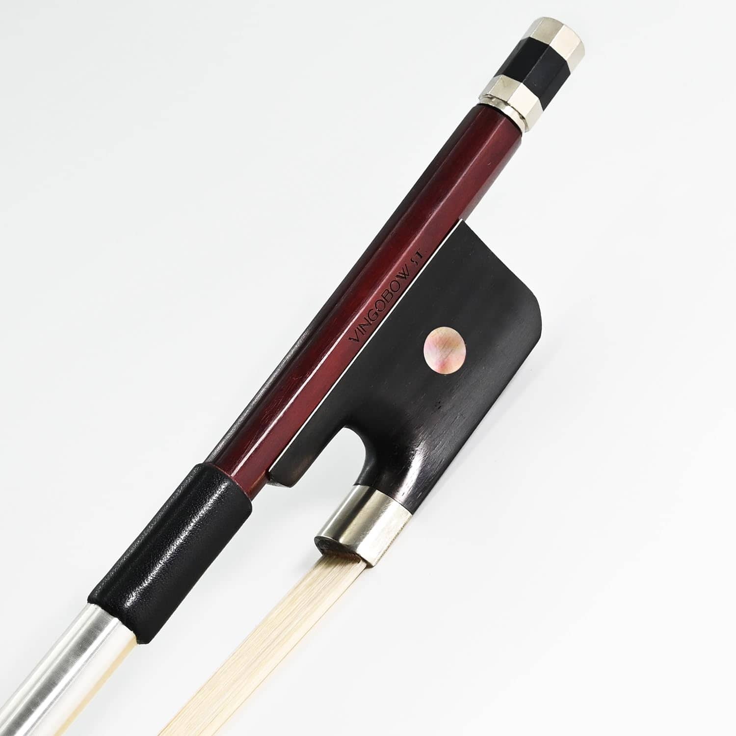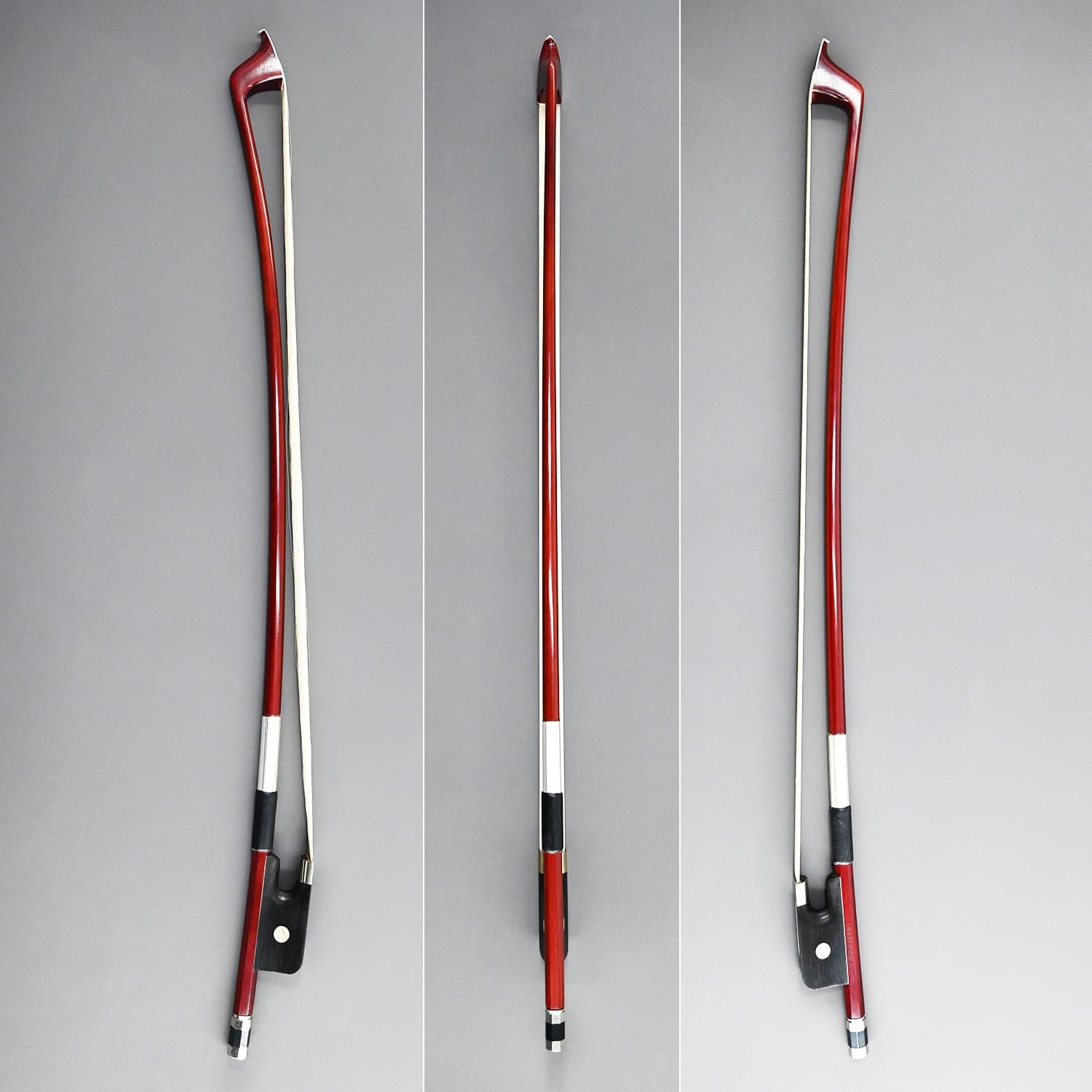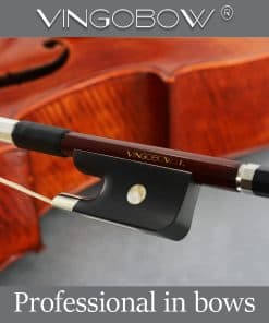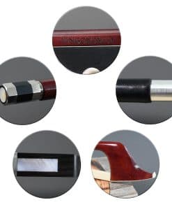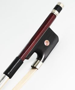 El arco tiene palo de Pau Brasil, secado al aire durante más de cinco años. Forma de palo redondo, excelente sensación de palo de madera. Adoptando cabello de caballo Mongol sin blanquear, te ofrecerá un sonido dulce. El puente de ébano negro muestra el grano natural de la madera, y está decorado con ojos parisinos clásicos. Empuñadura de cuero genuino, elegante bobinado de hilo de plata niquelada. Todas las piezas son ensambladas por el mismo experimentado fabricante desde el principio hasta el final. Es un buen arco para estudiantes.