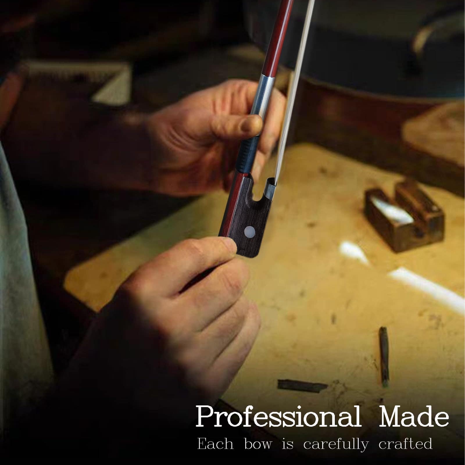 LIBERA TU POTENCIAL MUSICAL Acepta la armonía de la tradición y la innovación con nuestro Arco de Violonchelo 4/4. Diseñado para músicos que aprecian los aspectos más finos de su instrumento, este arco promete elevar tu experiencia de interpretación. Su diseño bien equilibrado ofrece un toque suave y receptivo, permitiendo expresiones matizadas y control dinámico. Nuestro arco de violonchelo es un testimonio de la sinergia entre la artesanía y el rendimiento. La construcción de fibra de carbono de alta calidad ofrece resistencia y flexibilidad, mientras que el pelo de caballo premium garantiza un tono cálido y rico con cada golpe. La atención al detalle se extiende hasta el frog ergonómico, diseñado para la comodidad y estabilidad durante largas sesiones de práctica o actuaciones. DISEÑADO PARA LA EXCELENCIA La esencia de nuestro arco de violonchelo radica en su capacidad para adaptarse a tu estilo individual. Su naturaleza versátil lo convierte en el compañero perfecto para varios géneros musicales, ofreciendo consistencia y confiabilidad tanto si tocas en solitario como en conjunto. POR QUÉ LO AMARÁS – Varilla duradera y fácil de usar. – Cabello de caballo natural para tonos suaves y uniformes. – Diseño ergonómico para un agarre cómodo y una reducción de la fatiga en la mano. – Viene preengrasado y listo para usar inmediatamente. Deja que el Arco de Violonchelo de Tamaño Completo 4/4 Blisskiss sea tu compañero en este viaje musical. Eleva tu interpretación y expresa tu pasión con cada golpe!