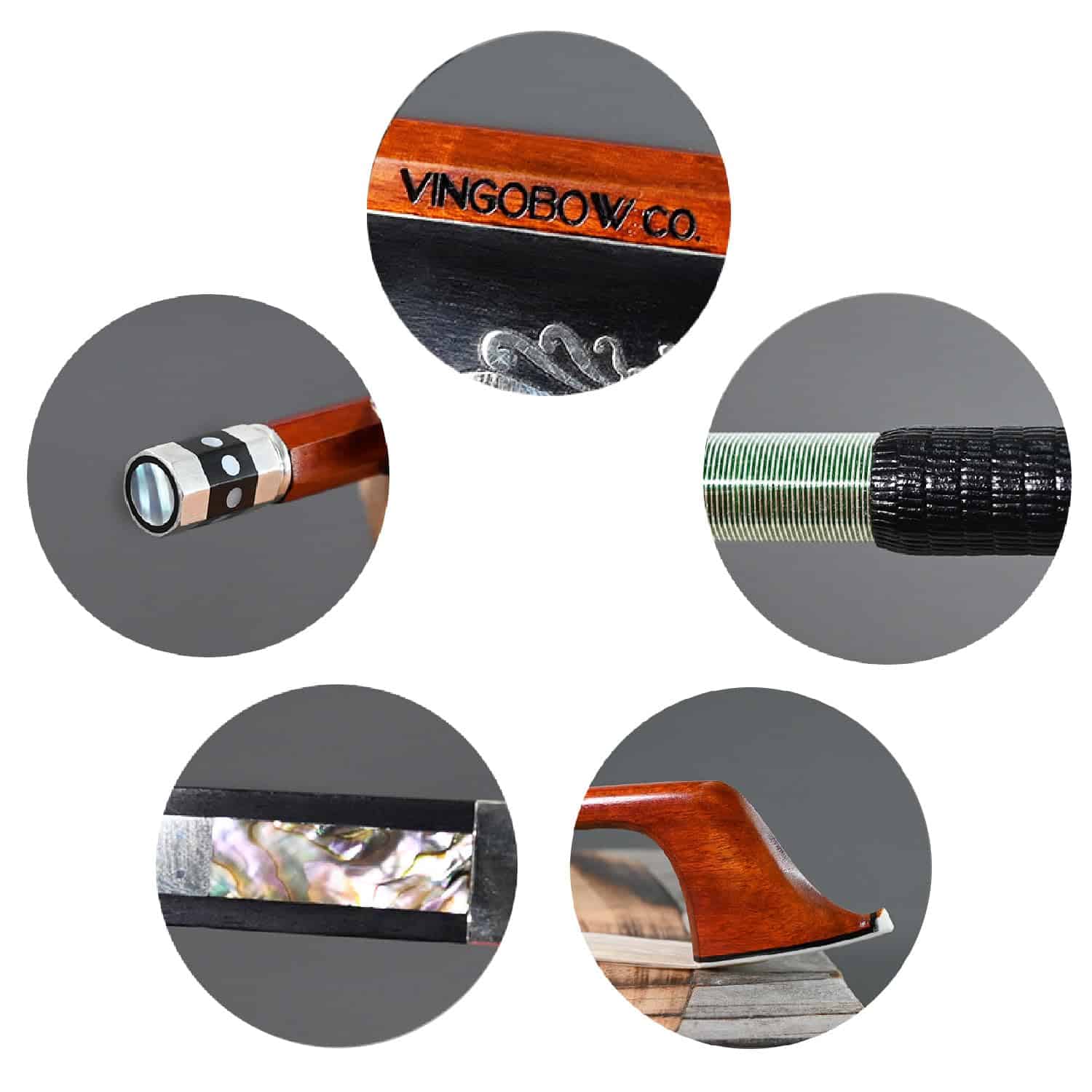 El arco tiene una varilla redonda y está hecho de Pernambuco de resistencia media. El modelo adopta crines de caballo naturales de buena calidad con buena flexibilidad, puede retener bien la resina. Puedes encontrar un deslizador de madreperla colorido, agarre de cuero genuino, elegante enrollado de hilo de plata de níquel. De aspecto encantador. Se trata de un arco de violonchelo realmente fino con un gran equilibrio. Produce un sonido rico, cálido y abierto. El arco está en buenas condiciones, recto, listo para tocar. Un arco fiable que es una pieza de calidad y duradera. Para jugadores profesionales. Un buen arco para tu elección. Dado que todos nuestros arcos están totalmente hechos a mano, cada arco puede tener ligeras diferencias en peso, longitud. Y puede dejar pequeñas marcas incluso si son hechas por un fabricante experimentado y antiguo. Las crines son, sin duda, de crin de caballo real, puede romperse una o menos piezas durante la resina o la reproducción, por favor no se preocupe ya que siempre usamos crin de caballo de mejor calidad que arcos de precio similar en el mercado, considerando que puede costar mucho al comprador volver a encerdar localmente. La concha de abulón es un material natural, el patrón de cada pieza es único, no es el mismo. Seleccionaremos uno similar/hermoso para ti. ¿Podrías compartir tus comentarios si es posible? Será de gran ayuda para otros compradores. Para cualquier problema que encuentres, por favor háznoslo saber directamente, haremos nuestro mejor esfuerzo para resolverlo en la primera oportunidad. Cada VingoBow es creado con cuidado y profesionalismo. Siempre revisamos cada detalle dos veces antes de enviarlo. Estás garantizado por nuestra compañía.