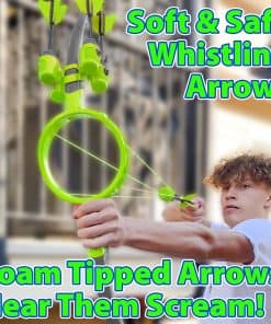 FLECHAS SILBANTES SUAVES Y SEGURAS: Las flechas de seguridad con punta de espuma tienen una cabeza grande con espuma acolchada que permite que las flechas reboten después de golpear su objetivo, por lo que las batallas son emocionantes y seguras. Ring Strike es ideal para niños y niñas de 14 años en adelante. Funciona tanto para usuarios diestros como zurdos.