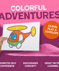 Esta vibrante y fluida arena le dará a tus creaciones artísticas un emocionante giro en 3D. Desde dibujos llenos de espolvoreados hasta frascos y jarrones llenos de arena, cada proyecto resaltará con una textura llamativa. Así que, aumenta la diversión sensorial ayudando a los niños a afilar sus habilidades motoras finas, coordinación mano-ojo e imaginación creativa. ¡Quién sabía que aprender podría ser tan…sensacional de arena!