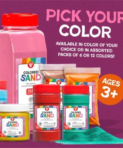 ¿Decorando una fiesta o dando vida a tus estantes en casa? ¡La arena de colores agrega un toque mágico donde sea que la necesites! Crea espectaculares obras de arte en 3D superponiendo arena en frascos, botellas o cajas de sombra. Ilumina la habitación usándola como base colorida en jarrones para plantas artificiales. Viene empaquetada individualmente en contenedores fáciles de verter y sin ensuciar, para que cuando se termine el tiempo de manualidades, todo sea muy fácil de limpiar. ¡Solo pon de nuevo la tapa en el frasco y guárdalo para la próxima vez!