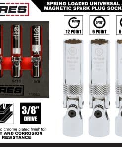 Este juego de enchufes magnéticos para bujías ARES 11080 incluye tres enchufes magnéticos de 3/8 pulgadas con diseños de junta universal con resorte. Fabricados con material de cromo vanadio de alta calidad, estos enchufes están diseñados para ofrecer una durabilidad excepcional. El acabado cromado pulido resiste el óxido y la corrosión, lo que garantiza la longevidad de la herramienta. Cada enchufe incluye un imán interior que retiene y protege las bujías, facilitando la instalación y extracción y reduciendo el riesgo de que las bujías se caigan del enchufe y hacia el compartimiento del motor. Con tamaños de enchufes de 14 mm, 9/16 pulgadas y 5/8 pulgadas, este juego ofrece cobertura para una amplia gama de aplicaciones de vehículos. El diseño de junta universal con resorte permite un servicio sin problemas incluso para las ubicaciones de bujías más recesivas y difíciles de alcanzar. El diseño con resorte mantiene la junta fija en uso incluso cuando se acciona en ángulos extraños, ofreciendo un agarre positivo sin que el enchufe se caiga hacia un lado para que el servicio de bujías sea más fácil que nunca. Los usuarios confían en ARES por ser herramientas de calidad que tienen un impacto. Si tiene algún problema con su juego de enchufes magnéticos de bujía con junta universal ARES, simplemente póngase en contacto con el servicio de atención al cliente para obtener ayuda con la solución de problemas, piezas, reemplazo o reembolso.