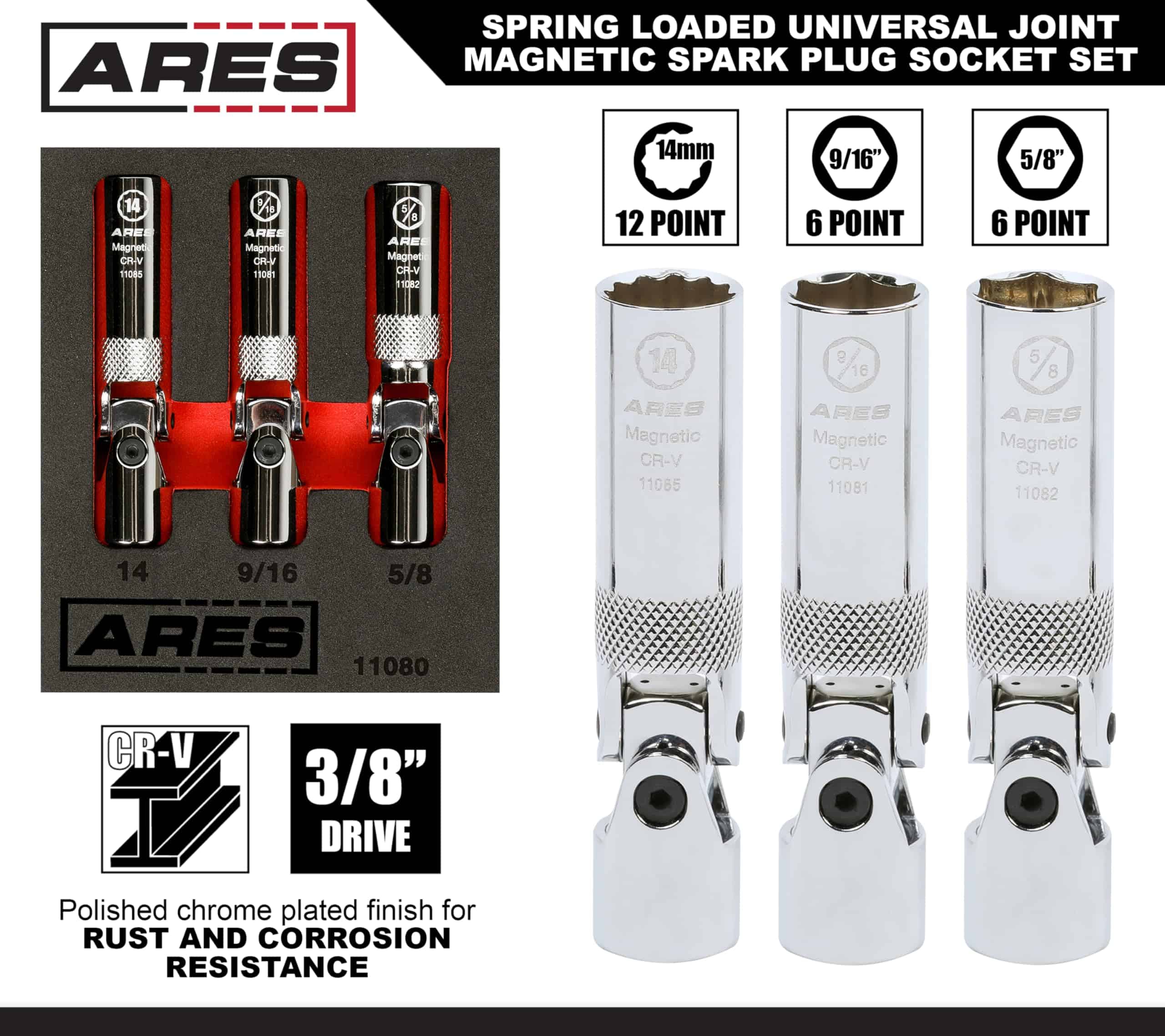 ARES 11080 – Juego de 3 enchufes magnéticos de bujía con